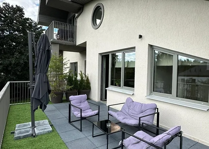 A 45 m²-es Terrace Apartment Mezaparks Riga Ziemelu körzetben található, és a kertre néz. A Svédtorony 7 km-re fekszik, míg a Cosmos Ilūziju Muzejs pedig 8 km-re van az apartmantól.